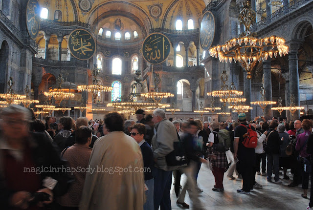 next on the itinerary was the hagia sofia (pronounced "aya sofia") mosque. this is not a functioning mosque, hence no carpeting and flash photography is allowed.